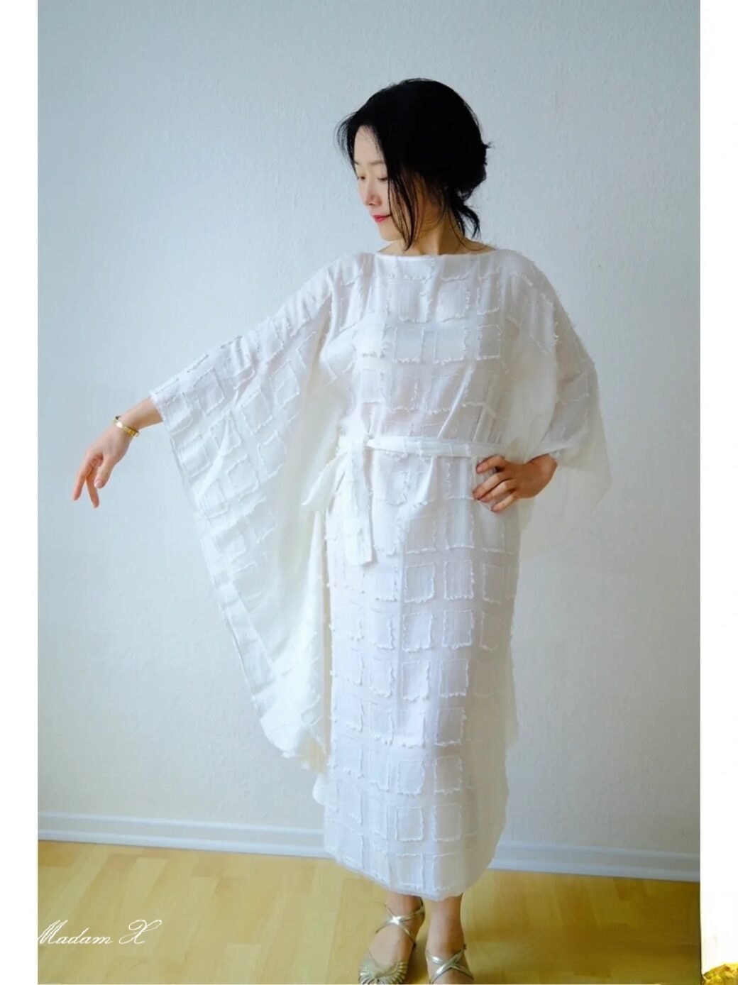 Dieses Kleid hat einen einfachen, eleganten Schnitt. Die optische Wirkung ist ätherisch und elegant feminin. Der Schwerpunkt dieses Modells liegt auf der Wahl des Materials, feine Stoffe sind es, die das Schmetterlingskleid noch schöner machen, verschiedene Stoffe schaffen verschiedene schöne Schmetterlinge.